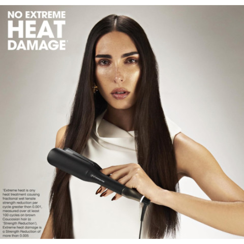 เพิ่มความเงางามได้ถึง 90%, ลดความฟูได้ถึง 2.5 เท่า และหนีบผมให้ตรงเร็วขึ้นถึง 3 เท่า ในการผ่านเพียงครั้งเดียวปลอดภัยต่อเส้นผมด้วยอุณหภูมิที่เหมาะสม