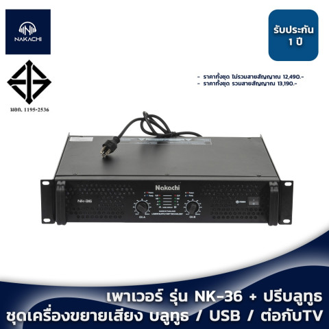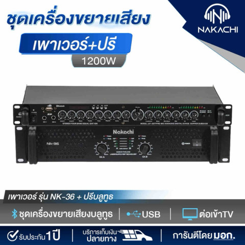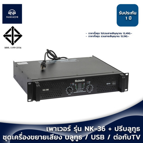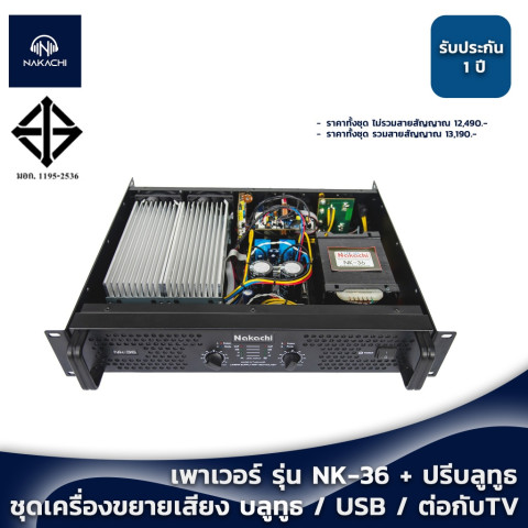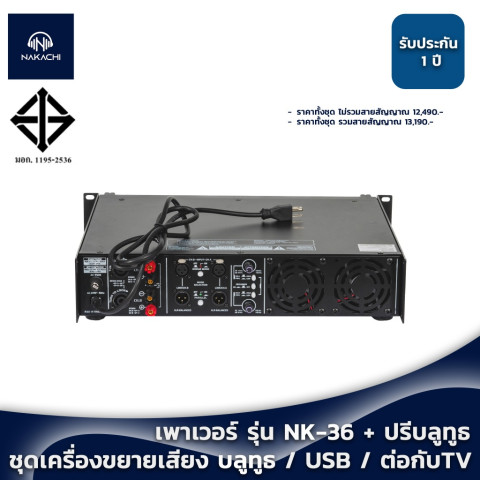 ชุดเครื่องเสียงกลางแจ้ง ชุดเครื่องขยายเสียง (เพาเวอร์แอมป์ NK-36 + ปรีบลูธูท) รับประกัน 1 ปี