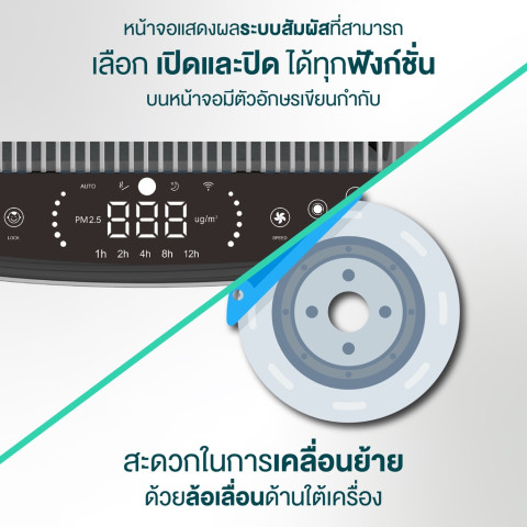หน้าจอสัมผัสแสดง AQI เป็นตัวเลข เข้าใจง่าย และตอบสนองไวต่อการเปลี่ยนแปลงของอากาศ