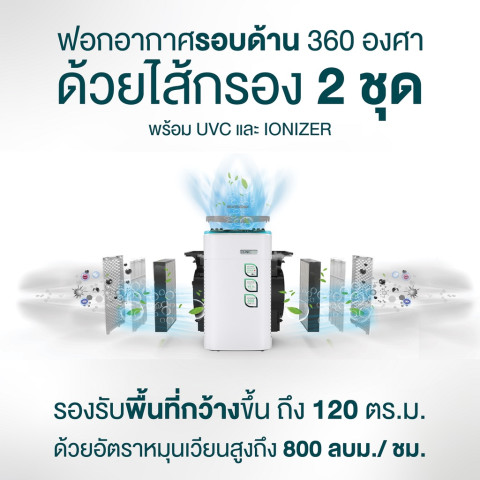 CADR (PM2.5) สูง 800 ลบ.ม./ชม. เร่งอากาศสะอาดได้ไว ครอบคลุมพื้นที่ใหญ่