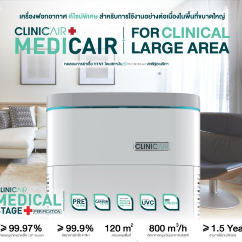 “สั่งวันนี้ ส่งทุกวัน ไม่เว้นวันหยุด” เครื่องฟอกอากาศเมดิคอลเกรด Clinicair Medicair ตัวจริงสำหรับบ้านและสถานพยาบาล ที่ต้องการอากาศสะอาดระดับ Medical Grade ครอบคลุมพื้นที่กว้าง 60–120 ตร.ม. มาพร้อม มอก. และการรับรองประสิทธิภาพการกำจัดแบคทีเรีย/ไวรัสในอากาศได้สูงถึง 99.9% (รับรองโดยสถาบัน Microbac USA) ใช้งานสะดวกด้วย AI Auto, หน้าจอสัมผัส, รีโมท และควบคุมผ่านแอปบนสมาร์ทโฟน (Wi‑Fi 2.4GHz) พร้อมบริการ ศูนย์ไทย รับประกัน 2 ปี อะไหล่ครบทุกชิ้นส่วน