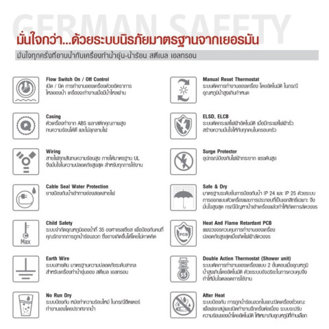 ระบบความปลอดภัยครบ ตัดการทำงานเมื่ออุณหภูมิสูงเกิน / ป้องกันไฟรั่ว (เฉพาะรุ่น DDC)