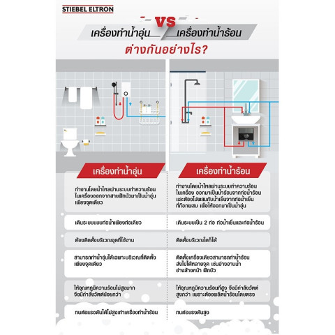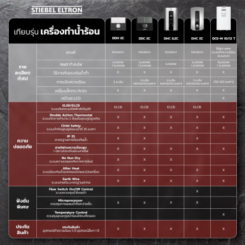 STIEBEL ELTRON เครื่องทำน้ำร้อน (6,000W / 8,000W) รุ่น DDH 6EC, DDH 8EC, DDC 6EC, DDC 8EC ทางเลือกของบ้านที่ต้องการ “น้ำร้อนแรง สม่ำเสมอ และปลอดภัย” ใช้งานได้หลากหลายจุด ทั้งอ่างล้างหน้า อ่างอาบน้ำ และฝักบัว ด้วยระบบควบคุมอุณหภูมิที่แม่นยำและแทงค์ทองแดงทนทาน มั่นใจคุณภาพของแท้ 100% (สินค้าใหม่มือ 1)