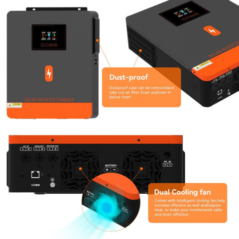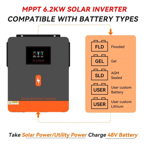 ยกระดับระบบโซลาร์เซลล์ของคุณให้ใช้งานได้ยืดหยุ่นทั้งแบบ ออนกริด และ ออฟกริด ด้วยอินเวอร์เตอร์ไฮบริดกำลังสูง 6.2KW ที่ออกแบบมาเพื่อการจ่ายไฟที่เสถียร มาพร้อม คลื่นไซน์บริสุทธิ์ และ Power Factor 1.0 ช่วยให้เครื่องใช้ไฟฟ้าทำงานเต็มประสิทธิภาพ เหมาะทั้งบ้านพักอาศัย ร้านค้า และงานที่ต้องการไฟคุณภาพสูง