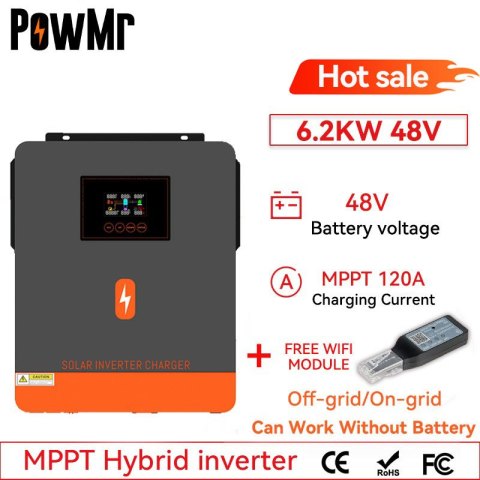 PowMr 6.2KW อินเวอร์เตอร์ไฮบริด พร้อมโมดูล WiFi ฟรี (48V เข้า / 220V ออก) ราคา 10,545.00 บาท