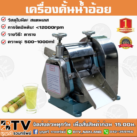 เครื่องคั้นน้ำอ้อย CHH (เฉพาะตัว) Sugar Cane Machine รุ่นใหม่ แข็งแรง ทนทาน ออกแบบมาเพื่อการคั้นน้ำอ้อยปริมาณมาก เหมาะสำหรับร้านน้ำอ้อย รถเข็น ผู้ประกอบการ และผู้ที่ต้องการเครื่องงานหนักใช้งานต่อเนื่อง ด้วยชุดลูกกลิ้ง 3 ตัว พร้อมระบบป้องกันน้ำเข้าไปในลูกรีด ช่วยให้ใช้งานสะอาด ถูกหลักอนามัย และดูแลรักษาง่าย