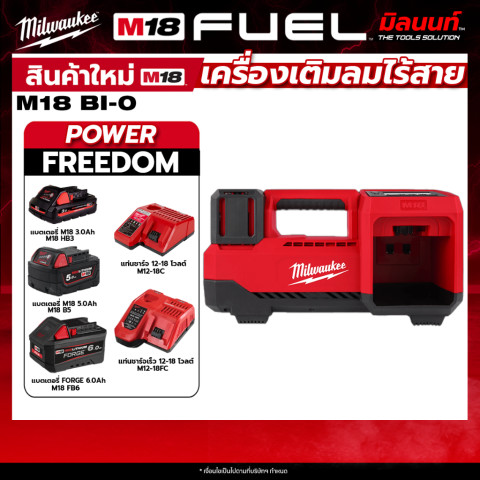 Milwaukee เครื่องเติมลมไร้สาย 18V รุ่น M18 BI-0 พร้อมแบตเตอรี่ และแท่นชาร์จ QT 3 ราคา 15,394.93 บาท