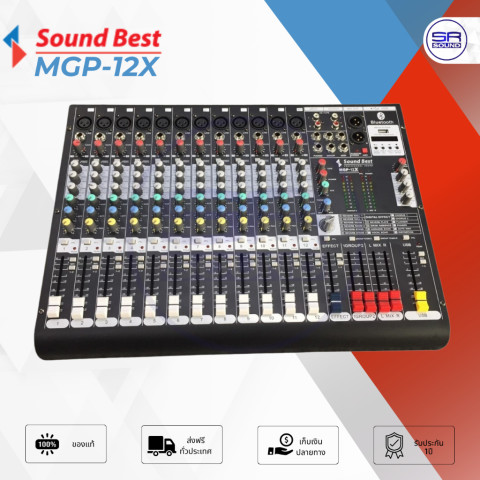 ฟรีค่าส่ง SOUNDBEST MGP-12X MIXER มิกเซอร์อนาล็อก 12CH พร้อมเอฟเฟคแท้ 16 โปรแกรม + USB/Bluetooth/MP3 (สินค้าใหม่แกะกล่อง มีหน้าร้าน) ในราคา 6,450.00 บาท เหมาะสำหรับงานร้องเพลง ไลฟ์สด ห้องซ้อม วงดนตรี งานอีเวนต์ และระบบเสียงกลางแจ้ง ให้โทนเสียงเนียน คุมไดนามิกได้ดี ปรับย่านเสียงได้ครบ ตอบโจทย์ทั้งมือใหม่และงานจริง