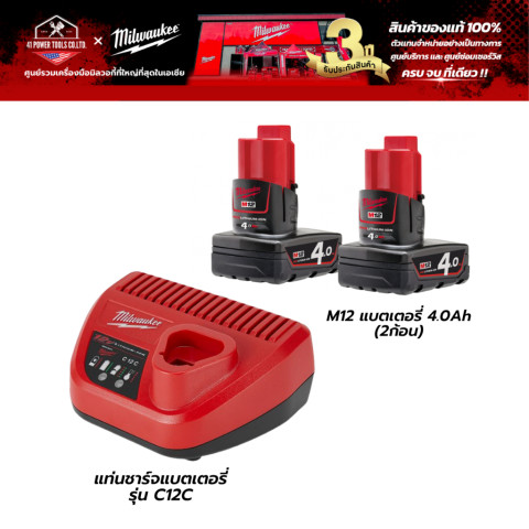 M12 แบตเตอรี่ 4.0Ah รุ่น M12B4 จำนวน 2 ก้อน