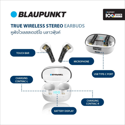 [สินค้าแถมงดจำหน่าย] Blaupunkt Lite One หูฟัง True Wireless หูฟังบลูทูธไร้สายดีไซน์ทันสมัย น้ำหนักเบา พกพาสะดวก มาพร้อมเสียงเบสทรงพลังและการควบคุมแบบสัมผัสที่ตอบสนองแม่นยำ เหมาะทั้งฟังเพลง ทำงาน หรือใช้งานระหว่างเดินทาง