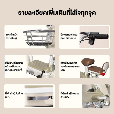 ตะกร้าหน้า + พนักพิงด้านหลัง + เบาะรองนั่งด้านหลัง