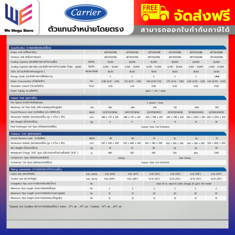 20,400 BTU (42TVEA024B / 38TVEA024B) SEER 17.06 | ค่าไฟ 17,458 บาท/ปี