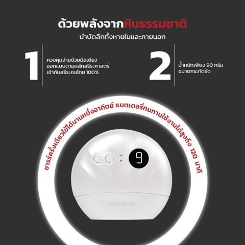ด้วยคุณสมบัติพิเศษของหินเปี่ยน ช่วยกระจายและระบายความร้อน ลดความอึดอัดระหว่างใช้งานปรับแรงสั่น/ความร้อน 9 ระดับ
