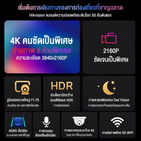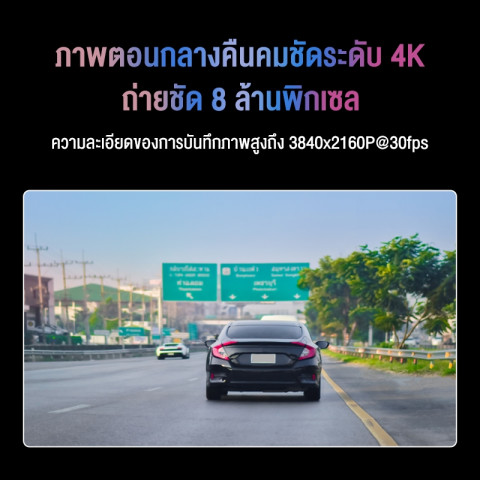 ความละเอียดสูง 2160P ให้ภาพคมชัดระดับ Ultra HD เก็บรายละเอียดป้ายทะเบียน ถนน และสภาพแวดล้อมรอบข้างได้อย่างครบถ้วน
