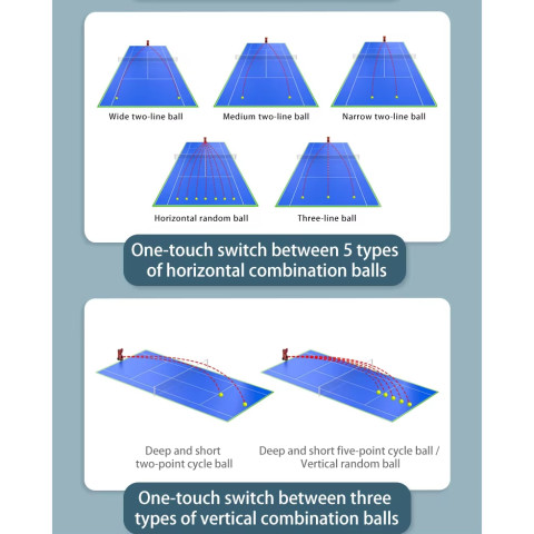 โหมดการยิงหลายรูปแบบ ตั้งค่าให้ยิงลูกซ้ำจุดเดิม หรือสลับซ้าย–ขวา เพื่อฝึกฟุตเวิร์กและการอ่านทิศทางลูก