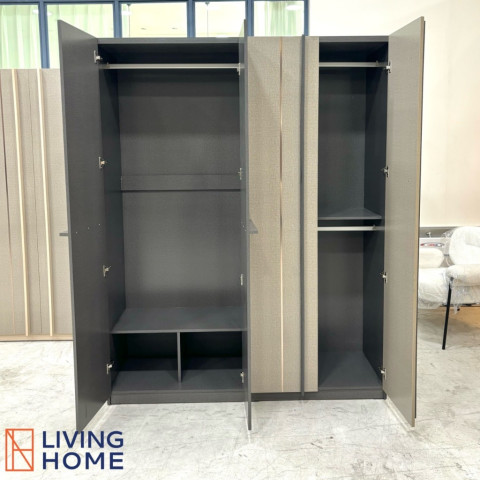 ราคา 5,996.50 บาท — ตู้เสื้อผ้าขนาดใหญ่ ดีไซน์เรียบโมเดิร์น โทนเทาสวยสุภาพ จัดเก็บได้จุใจทั้งเสื้อผ้าแบบแขวนและของใช้พับ พร้อมราวแขวนสแตนเลส แข็งแรง ใช้งานยาวนาน เหมาะกับห้องนอน คอนโด หรือบ้านที่ต้องการความเป็นระเบียบแบบมินิมอล