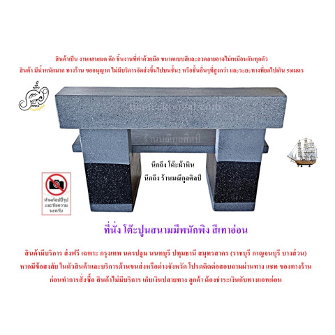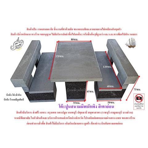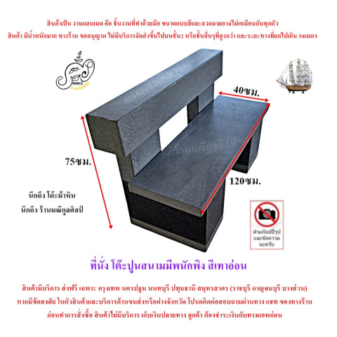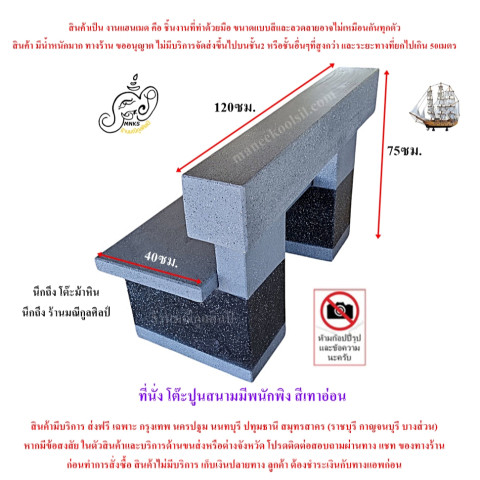 ม้านั่ง: ยาว 120 ซม. กว้าง 32 ซม. สูง 75 ซม.