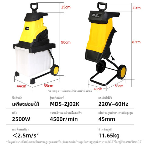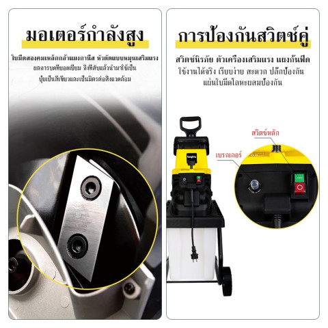 พลังแรง ย่อยไว มอเตอร์กำลัง 2500W รอบเดินเบา 4500 รอบ/นาที รองรับงานย่อยกิ่งไม้ต่อเนื่อง