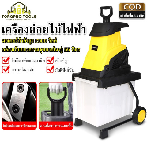 【TorqPro】เครื่องย่อยไม้ 220V กำลังสูงพิเศษ 2500W พร้อมกล่องเก็บชิปขนาดใหญ่ เหมาะสำหรับบ้าน สวน ฟาร์ม และงานดูแลพื้นที่สีเขียว ช่วยย่อยกิ่งไม้ให้เป็นชิป/เศษไม้ได้รวดเร็ว ลดปริมาณกองกิ่งไม้ เพิ่มความเป็นระเบียบ และนำเศษไม้ไปทำปุ๋ยคลุมดินได้สะดวก