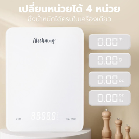 Alechaung เครื่องชั่งดิจิตอลในครัว จอ LED ความละเอียดสูง ที่ช่วยให้ทุกเมนูของคุณแม่นยำระดับมืออาชีพ ทั้งการทำอาหารและอบขนม ใช้งานง่าย ดีไซน์สวย เรียบหรู ประหยัดพื้นที่ เหมาะกับทุกห้องครัว
