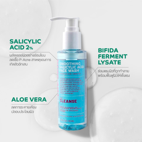 เนื้อเจลใส ปราศจากซัลเฟตและสารทำความสะอาดที่รุนแรง ช่วยชำระล้างสิ่งสกปรก คราบเหงื่อ ความมันส่วนเกิน และสิ่งอุดตันในรูขุมขนได้อย่างหมดจด พร้อมดูแลผิวอย่างอ่อนโยนด้วยส่วนผสมสำคัญ Salicylic Acid 2% ที่ช่วยผลัดเซลล์ผิวเสื่อมสภาพ ลดการสะสมของเชื้อแบคทีเรีย P.Acne สาเหตุการเกิดสิวอักเสบ ลดการเกิดสิวหัวดำ สิวเสี้ยน และช่วยให้รูขุมขนดูกระชับ ผิวเรียบเนียนขึ้นตั้งแต่ครั้งแรกที่ใช้*