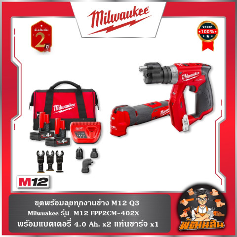 พร้อมลุยทุกหน้างานช่างกับ ❤️Milwaukee❤️ ชุดพร้อมลุยทุกงานช่าง Q3 M12 FPP2CM-402X ชุดคอมโบไร้สายระบบ 12V ที่รวมทุกฟังก์ชันสำคัญสำหรับช่างมืออาชีพและสายงาน DIY ในชุดเดียว มาพร้อมหัวเปลี่ยนอเนกประสงค์ แบตเตอรี่ความจุสูง และแท่นชาร์จครบชุด ใช้งานง่าย คล่องตัว พลังแรงตามสไตล์ Milwaukee
