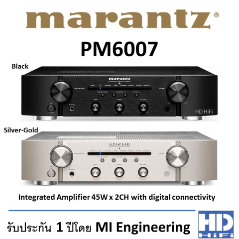 Marantz PM6007 Integrated Amplifier 2x 45W แอมป์อินทิเกรตที่พาคุณก้าวสู่โลก Hi‑Fi อย่างเต็มตัว ด้วยพลังขับ 2 x 45W (8Ω RMS, 20Hz–20kHz) ให้รายละเอียดเสียงชัดเจน โทนเสียงละเมียดละไม และมิติเสียงที่เป็นธรรมชาติ เหมาะทั้งการฟังเพลงจริงจังและยกระดับชุดเครื่องเสียงในบ้านให้ “ครบ” ในเครื่องเดียว