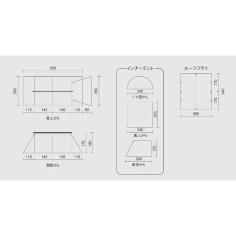 ขนาดเต็นท์ด้านใน: ประมาณ 240 × 240 × 150 ซม.
