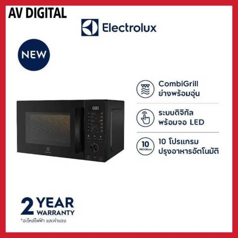 ELECTROLUX ไมโครเวฟ EMG23D22B 23 ลิตร (สีดำ) ราคา 8,990.00 บาท ไมโครเวฟระบบ เวฟ+ย่าง ที่ตอบโจทย์ทั้งอุ่น ร้อน ย่าง และปรุงอาหารหลากหลายเมนูในเครื่องเดียว มาพร้อมกำลังไฟไมโครเวฟ 800 วัตต์ ปรับได้ 5 ระดับ และกำลังไฟย่าง 1,000 วัตต์ เพิ่มความอร่อยด้วยโหมดผสม พร้อมหน้าจอ LED และการควบคุมแบบดิจิทัลใช้งานง่าย เหมาะสำหรับครัวบ้าน คอนโด หรือออฟฟิศด้วยขนาด 23 ลิตร กำลังดีสำหรับการใช้งานประจำวัน