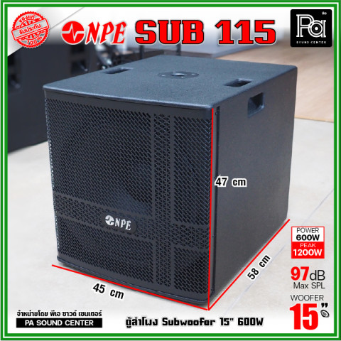NPE SUB-115 ตู้ซับเบสขนาด 15 นิ้ว แบบพาสซีฟ ที่ออกแบบมาเพื่อคนรัก “เบสแน่นๆ” และงานที่ต้องการพลังเสียงจริงจัง ให้กำลังขับ 600W และเร่งได้สูงสุด 1200W พลังวัตต์มาเต็ม เหมาะอย่างยิ่งสำหรับ เครื่องเสียงเวทีกลางแจ้ง และ งานเครื่องเสียงให้เช่า ที่ต้องการแรงปะทะย่านต่ำแบบอิ่ม หนัก และคุมโทนได้ดี