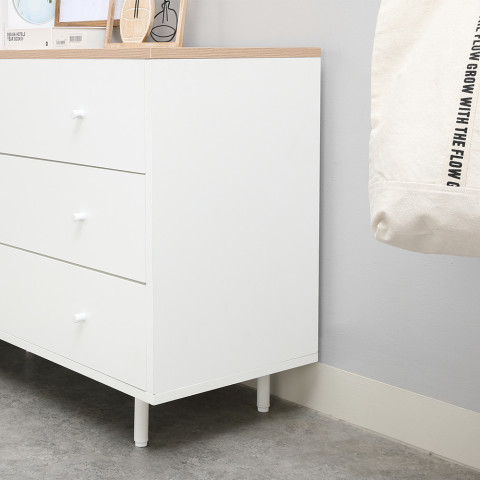 ผลิตจากไม้พาร์ทิเคิลบอร์ดเกรดสูง (E1) ปิดผิวเมลามีนโทนสีขาวและไลท์วู้ด ช่วยทนความร้อนและความชื้นได้ดี เช็ดทำความสะอาดง่าย เหมาะกับการใช้งานในชีวิตประจำวันเปิด-ปิดนุ่มนวล ลดเสียงรบกวน