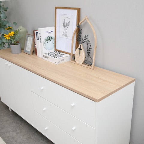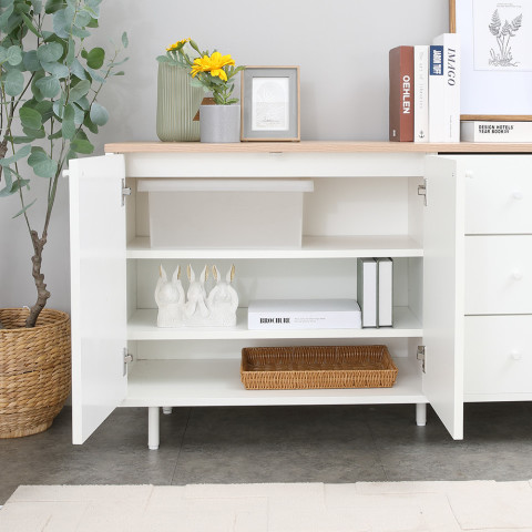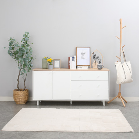 INDEX LIVING MALL ตู้ไซด์บอร์ด รุ่นมินิมอล ขนาด 150 ซม. สีขาว/ไลท์วู้ด เติมความเรียบหรูแบบโมเดิร์นให้บ้านดูเป็นระเบียบในพริบตา ด้วยตู้ไซด์บอร์ดดีไซน์มินิมอลที่ให้พื้นที่จัดเก็บกว้างขวาง ซ่อนของใช้ให้พ้นสายตา ลดความรก และช่วยป้องกันฝุ่นได้อย่างมีสไตล์ เหมาะทั้งห้องนั่งเล่น ห้องทานอาหาร หรือมุมทางเดิน