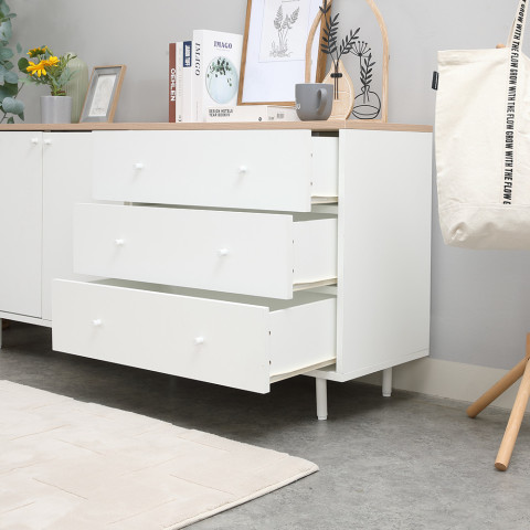 มาพร้อมตู้บานเปิด 2 บาน ภายในมีชั้นปรับระดับได้ 2 ชั้น ช่วยแบ่งพื้นที่เก็บของได้ตามต้องการ พร้อมลิ้นชักอเนกประสงค์ 3 ลิ้นชัก เหมาะสำหรับเก็บของใช้ทั่วไป ผ้าปูที่นอน หรือของชิ้นเล็กให้หยิบง่ายและเป็นระเบียบวัสดุแข็งแรง ผิวเมลามีนดูแลง่าย