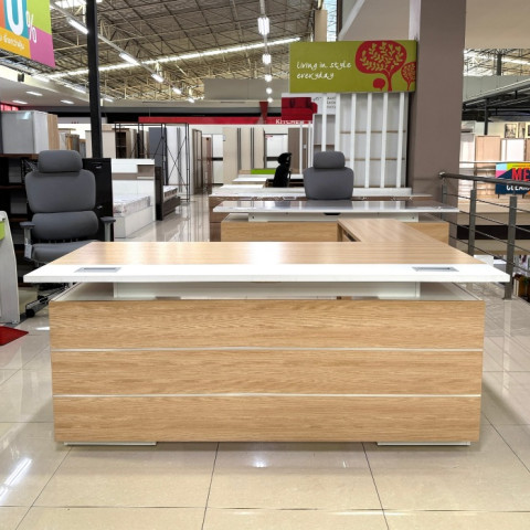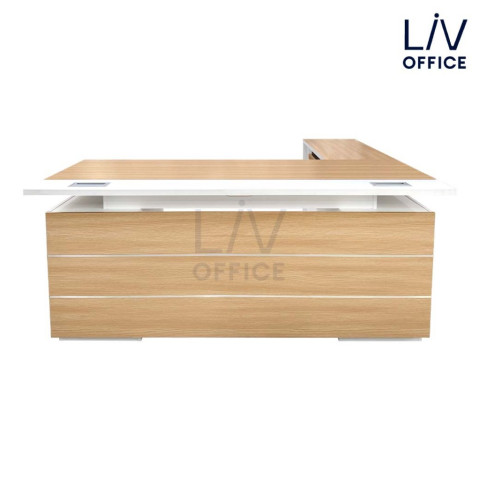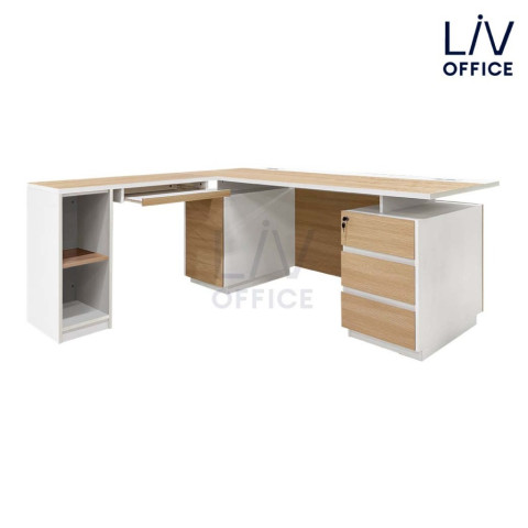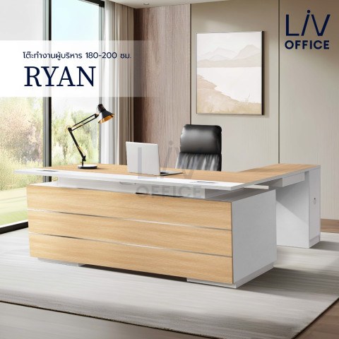 โต๊ะทำงานผู้บริหารพร้อมโต๊ะข้าง สีลาเต้ รุ่น Ryan (ไรอัน) | Liv Office ยกระดับห้องทำงานให้ดูภูมิฐาน ทันสมัย และเป็นระเบียบด้วยโต๊ะผู้บริหารทรงเข้ามุมรูปตัว L ที่ออกแบบมาเพื่อการทำงานจริงจัง พร้อมพื้นที่ใช้งานกว้างขวาง เหมาะกับออฟฟิศผู้บริหาร ห้องทำงานส่วนตัว หรือพื้นที่ที่ต้องการจัดวางอุปกรณ์หลายชิ้นอย่างเป็นระบบ ในราคาเพียง 7,875.00 บาท