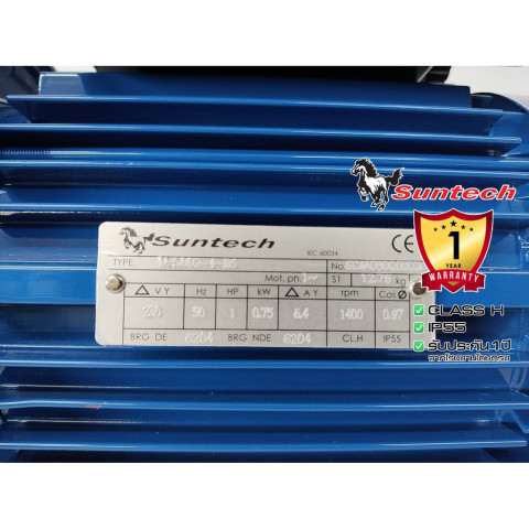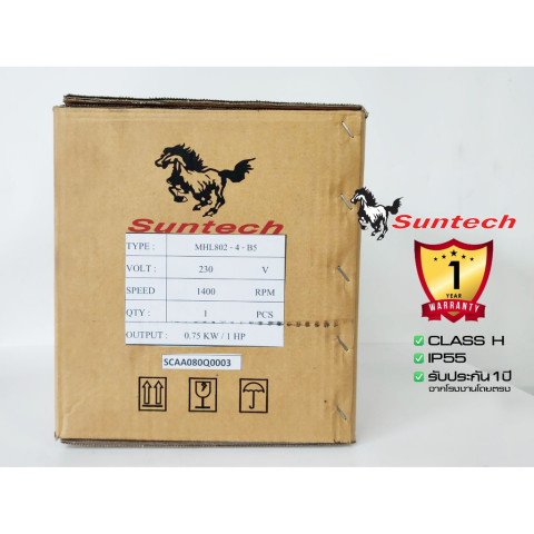 SUNTECH มอเตอร์ไฟฟ้าหน้าแปลน 1 แรงม้า 220V 1PHASE รุ่น MHL802-4-B5 (4P 1450RPM) ตัวเลือกคุ้มค่าสำหรับงานส่งกำลังทั่วไป ใช้งานกับไฟบ้าน 220V ติดตั้งแบบหน้าแปลน (B5) เดินเรียบ เสียงเงียบ สั่นน้อย พร้อมวัสดุคุณภาพเพื่ออายุการใช้งานที่ยาวนาน เหมาะทั้งงานภายในและภายนอกอาคาร