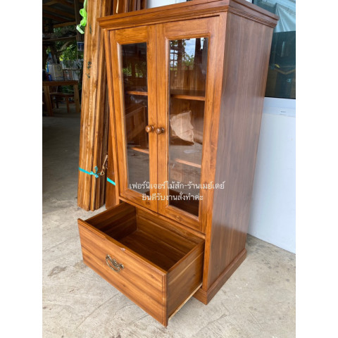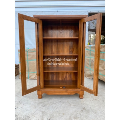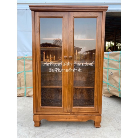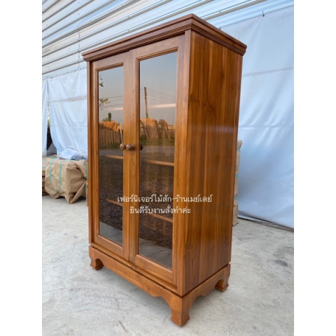 (ส่งฟรี!) ตู้กระจกไม้สักทอง ตู้โชว์/ตู้เก็บของอเนกประสงค์ งานไม้สักแท้ 100% ลายไม้สวย คลาสสิก ช่วยให้บ้านเป็นสัดส่วน ดูเรียบร้อยขึ้นทันที ในราคา 8,500.00 บาท