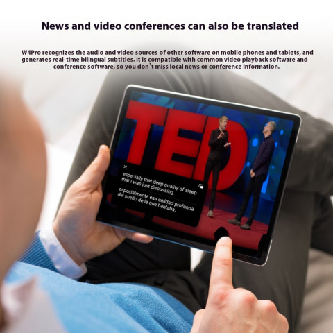 รองรับการประชุม/วิดีโอ พร้อมซับไตเติลสองภาษา สามารถรับรู้แหล่งเสียงจากแอปอื่นบนมือถือหรือแท็บเล็ต และสร้างคำบรรยาย 2 ภาษาแบบเรียลไทม์ ใช้ได้กับซอฟต์แวร์ประชุมและเครื่องเล่นวิดีโอ ช่วยไม่พลาดประเด็นสำคัญ