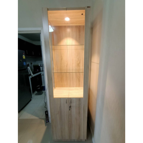 My Living Mall ตู้โชว์ดาวน์ไลท์ รุ่น CB-001 / XCU ตู้โชว์อเนกประสงค์สำหรับแต่งบ้าน/แต่งห้อง ที่ช่วยยกระดับมุมโปรดให้ดูพรีเมียมด้วย กระจก 3 ด้าน และ ไฟดาวน์ไลท์ 1 ดวง ส่องโชว์ของสะสม เครื่องแก้ว ฟิกเกอร์ หรือของตกแต่งได้โดดเด่นยิ่งขึ้น พร้อมฟังก์ชันจัดเก็บที่ครบ ทั้งบานเปิดและลิ้นชัก พร้อมกุญแจ เพิ่มความเป็นระเบียบและความมั่นใจในการใช้งานทุกวัน