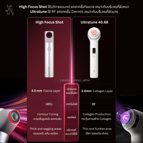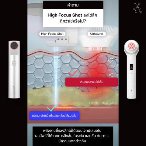 High Focus Shot เหมาะกับผิวส่วนที่หนา เช่น กรอบหน้า และเหนียง เพื่อความกระชับชัดขึ้น