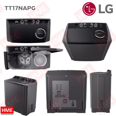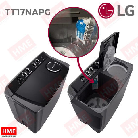 IX [HME] LG เครื่องซักผ้า 2 ถัง รุ่น TT17NAPG (17 กก.) ระบบ Roller Jet สีดำ ในราคา 7,694.50 บาท ช่วยให้การซักผ้าของคุณง่ายขึ้น ประหยัดเวลา และได้ความสะอาดอย่างมั่นใจ ด้วยเทคโนโลยี Roller Jet ที่ถูผ้าพร้อมการหมุนเพื่อขจัดคราบได้อย่างมีประสิทธิภาพ พร้อมเลือกโปรแกรมซักได้ตามชนิดผ้า ให้ผ้าสะอาดคงสีและอ่อนโยนต่อเนื้อผ้าในทุกวัน