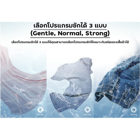 เลือกโปรแกรมซักได้ 3 แบบ ปรับให้เหมาะกับเนื้อผ้าและความสกปรก
