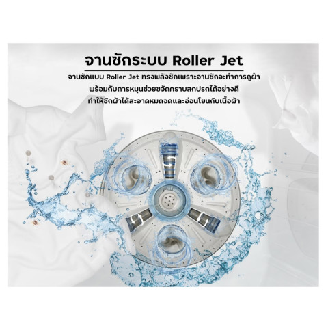 Roller Jet จานซักทรงพลัง ช่วยถูและหมุนพร้อมกัน เพื่อขจัดคราบสกปรกได้ดี ซักสะอาดทั่วถึง