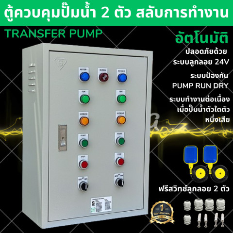 SMAC ตู้ควบคุมปั๊มน้ำ 2 ตัว แบบสลับการทำงาน (TRANSFER PUMP) ทางเลือกสำหรับระบบส่งน้ำที่ต้องการความต่อเนื่องและความปลอดภัยสูง ช่วยกระจายภาระการทำงานของปั๊มทั้ง 2 ตัวด้วยการสลับการทำงานอัตโนมัติ ลดการสึกหรอ ยืดอายุการใช้งานของมอเตอร์ และเพิ่มความมั่นใจด้วยระบบป้องกันไฟฟ้าครบชุด เหมาะทั้งบ้านพักอาศัย อาคารพาณิชย์ โรงงาน และงานระบบถังพักน้ำบน-ล่าง
