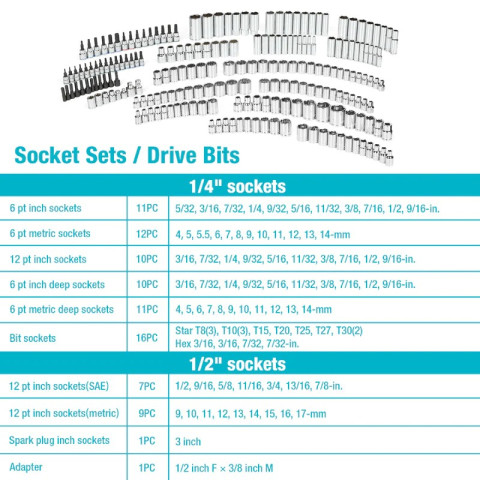 รวมเครื่องมือทั้ง 1/2"3/8" และ 1/4" Drive ใช้งานได้หลากหลายสถานการณ์