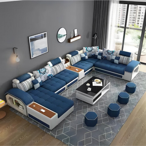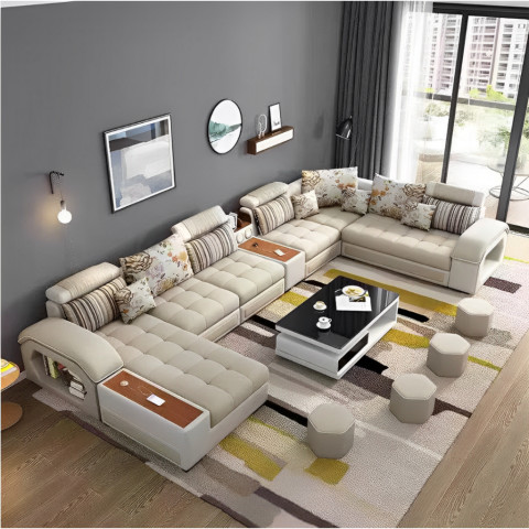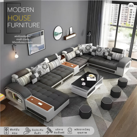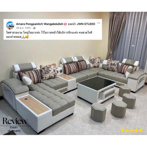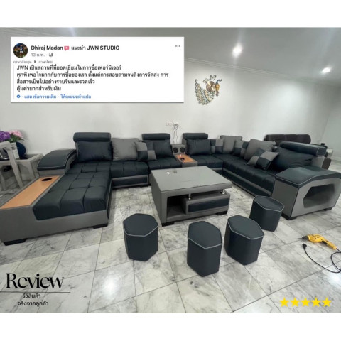 โซฟารับแขกโมเดิร์น JWN STUDIO รุ่น Joyful S3 (U-Shape) 7 ที่นั่ง พร้อมโต๊ะกลาง เติมความหรูหราให้บ้านยุคใหม่ด้วยโซฟาครบชุดขนาดใหญ่ ดีไซน์โมเดิร์น-ลักชัวรี นั่งสบาย รองรับการใช้งานจริงทั้งวัน และเพิ่มอรรถรสความบันเทิงด้วยลำโพงบลูทูธบิ้วอิน พร้อมสายชาร์จ USB บิ้วอิน ดูหนัง ฟังเพลง หรือชาร์จมือถือได้จากโซฟาตัวเดียว จบครบทั้งไลฟ์สไตล์และฟังก์ชัน