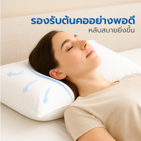 เปลี่ยนทุกคืนให้เป็นการพักผ่อนแบบโรงแรมด้วยหมอนสัมผัสนุ่มสบายจาก NANO FIBER 3D-TOUCH TECHNOLOGY ที่ช่วยกระจายน้ำหนักศีรษะได้ดี คืนตัวไว ระบายอากาศเยี่ยม ไม่อับชื้น ลดโอกาสสะสมไรฝุ่นและเชื้อรา พร้อมผ้าหุ้ม Softex เนียนนุ่ม ไม่ยับง่าย แห้งไว ซักทำความสะอาดได้สะดวก ตื่นมาแล้วรู้สึกคอ-ไหล่ผ่อนคลายขึ้น และหลับสบายแบบไม่ร้อน