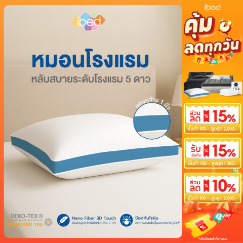 ibed หมอนหนุนโรงแรม Sof-touch สัมผัสนุ่มแบบ 3D ป้องกันไรฝุ่น ซักเครื่องได้ รุ่น I / II