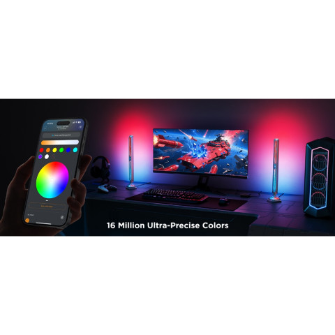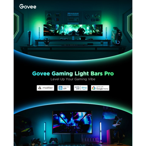 Govee Gaming Light Bars Pro (H6048) ไฟตั้งโต๊ะเกมมิ่งดีไซน์ Cyberpunk สุดล้ำ ที่ยกระดับมุมเล่นเกม/โต๊ะทำงานให้โดดเด่นด้วยแสง RGBIC สีแม่นยำถึง 16 ล้านเฉด และเอฟเฟกต์แบบ 3 มิติจากการกระจายแสงรอบทิศทาง พร้อมซิงค์แสงกับหน้าจอและเสียงเพลงเพื่อความอินแบบเรียลไทม์