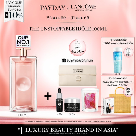 LANCOME IDÔLE EDP 100 ML น้ำหอมกลิ่นดอกไม้หวานสดชื่น ที่ปลุกความมั่นใจให้ผู้หญิงยุคใหม่ผู้เข้มแข็งและเปี่ยมพลัง ให้คุณเปล่งประกายในเวอร์ชั่นที่ดีที่สุดของตัวเองทุกครั้งที่ฉีด