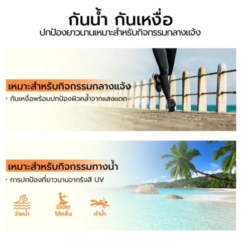 กันน้ำ กันเหงื่อ เหมาะกับกิจกรรมกลางแจ้ง ทะเล ฟิตเนส หรือวันที่ต้องออกแดดนาน